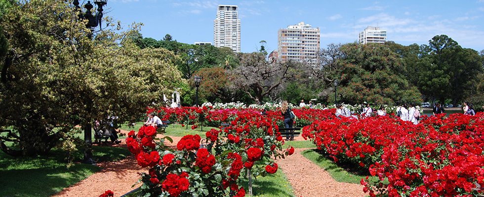 Un espacio al aire libre para disfrutar todo el año en el que se destacan el lago con su Puente Griego, la Pérgola, el Paseo de los Poetas -donde se exhiben los bustos de poetas famosos de Argentina y el extranjero-, el Patio Andaluz, el Anfiteatro y varias hectáreas de parque cubierto por miles de rosales de más de 100 especies diferentes.