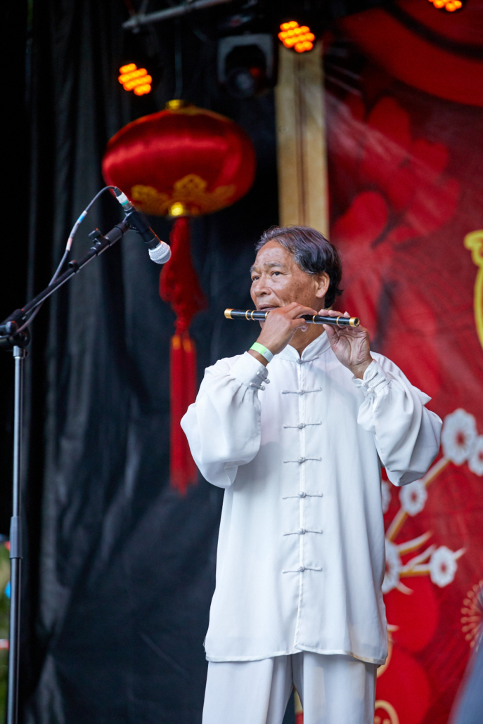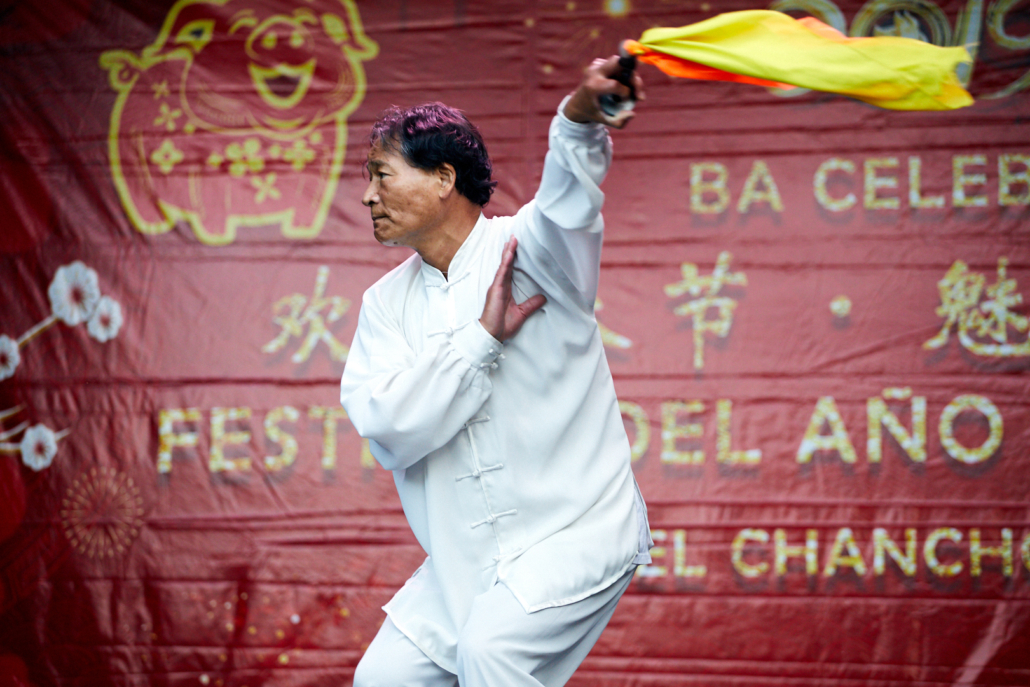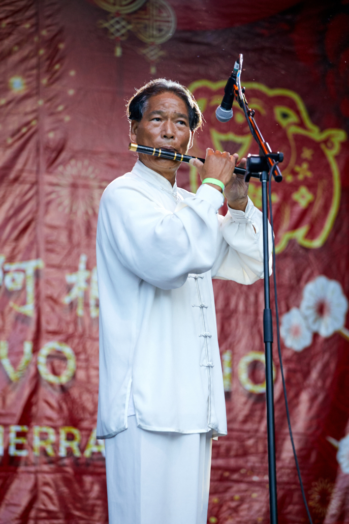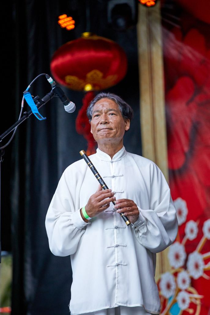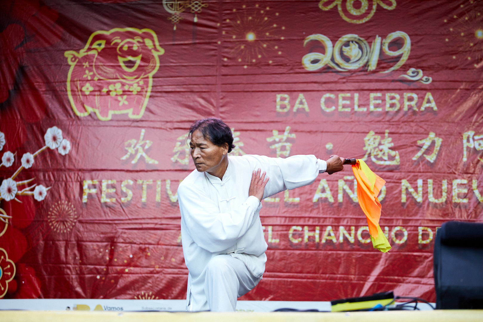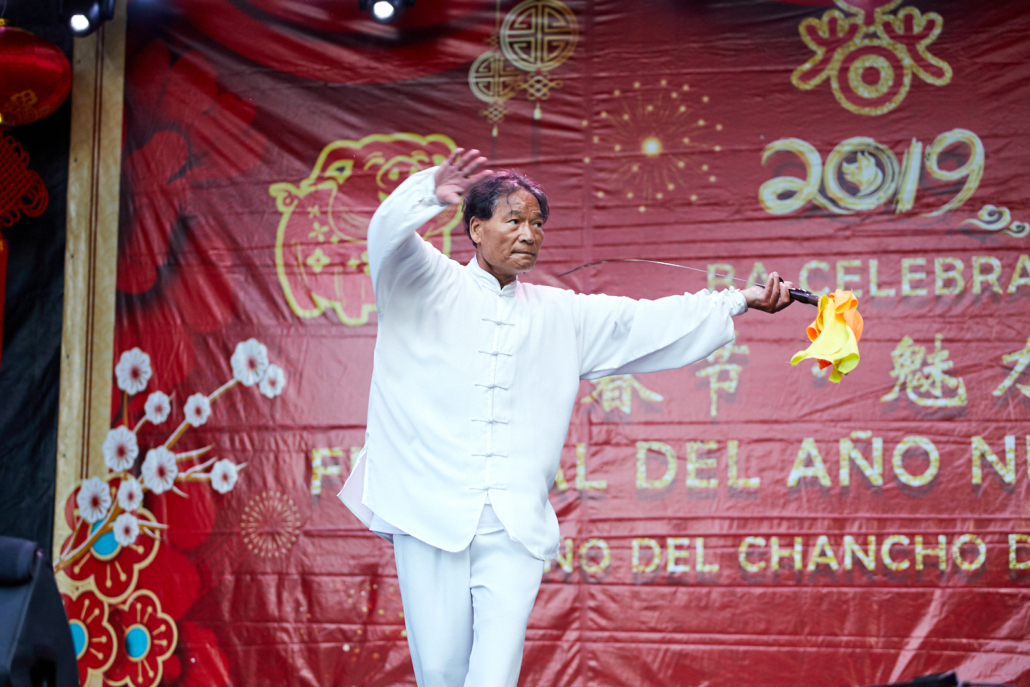 Además, se dedica a la música tradicional China. Nos trajo el sonido de la flauta y también una demostración de arte marcial chino antiguo con armas.
