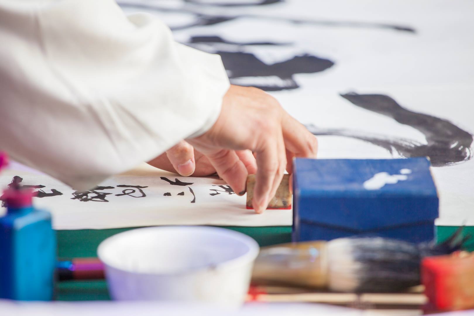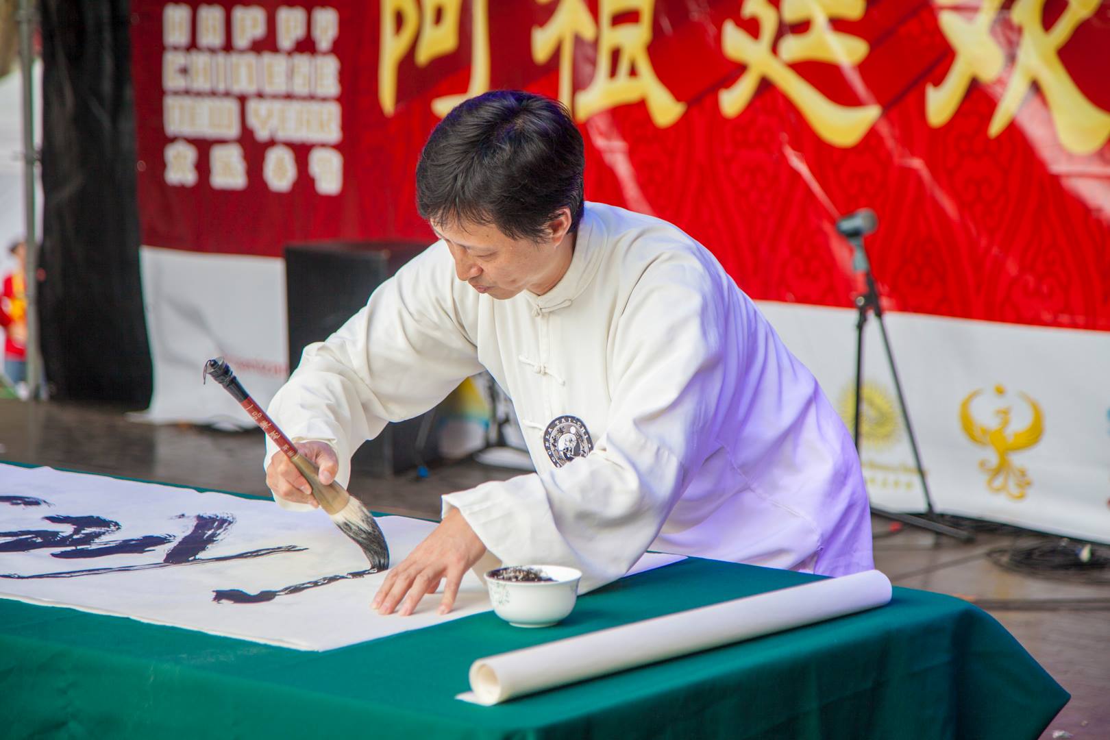 La muestra de caligrafía china estuvo a cargo del Maestro Liu Ming, quien es un experto en la materia. Desde chico tuvo contacto con el arte en todas sus formas; sus padres y abuelos formaron parte de la emblemática Ópera China, además de la medicina tradicional y las artes marciales internas.
