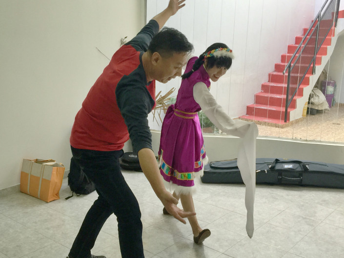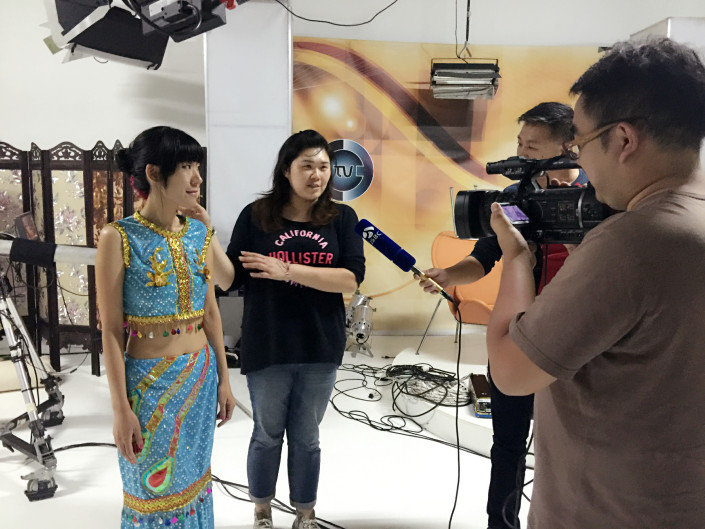 专访刚开始不久,江苏卫视的工作人员便被录制现场的愉悦氛围感染,同本期节目的特约嘉宾Lyla Peng切磋起了傣族孔雀舞及藏族舞蹈。现场欢声笑语,好似一个幸福的大家庭。