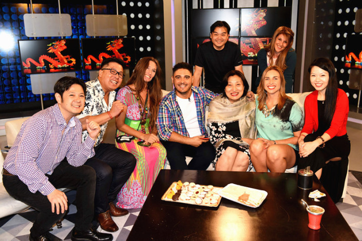 昨晚12时,“欢乐春节”组委会负责人之一陈静,陪同阿根廷移民协会主席胡安·萨拉费安先生以及华人著名歌手阿龙,华人著名演员黄胜煌,现场翻译刘瑛及组委会工作人员,一同来到阿根廷C5N电视台《LA N OCHE》栏目直播间,讲解即将举办的2016阿根廷“欢乐春节”庆典活动,并进行了现场直播。直播开始后,著名华人歌手阿龙的一首《娜鲁湾情歌》唱的热情奔放,博得在场观众的热烈掌声。
