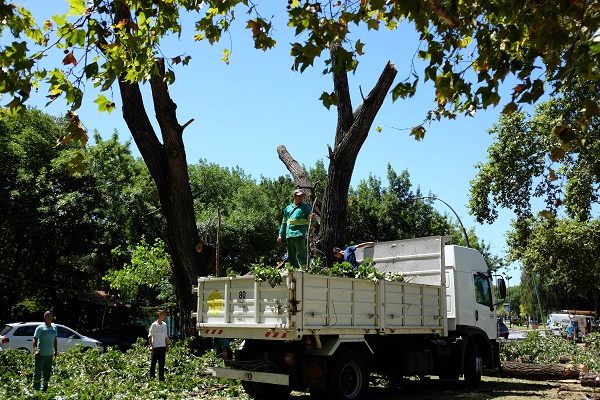 记者在现场看到,市政环保工人正在对部分树木进行修剪树枝作业。“为了让市民可以更好地观看表演,我们接到任务,特别前来加班工作。”工作人员向记者表示。