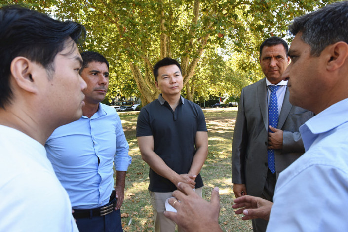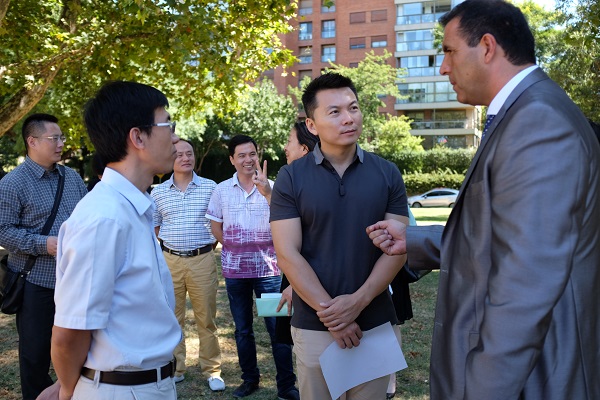 1月27日下午,中国驻阿根廷大使馆官员王晓林政务参赞和杨川颖文化参赞一行,来到“欢乐春节”活动举办地点-阿根廷国家公园广场,与布市贝格拉诺区所在的第13区区长古斯塔沃·阿塞韦多(Gustavo Acevedo)先生及联邦警察第51分局局长赫克托·劳尔·帕来西奥(Hector Raúl Palacio)会面。双方就三天后将在这里举办的阿根廷“欢乐春节”庆祝活动作最后部署,就活动的安保、卫生、交通等问题交换意见,确保两天的活动能够顺利圆满进行。