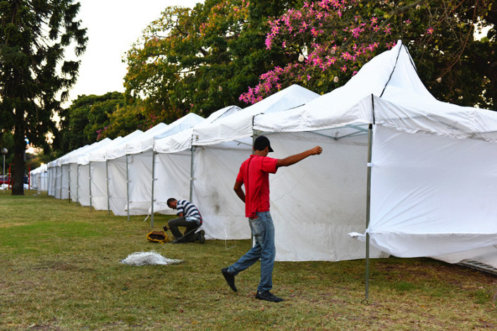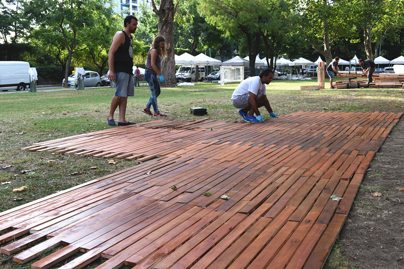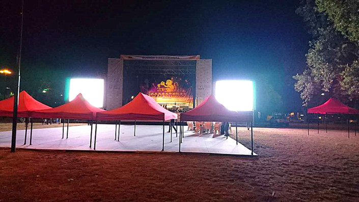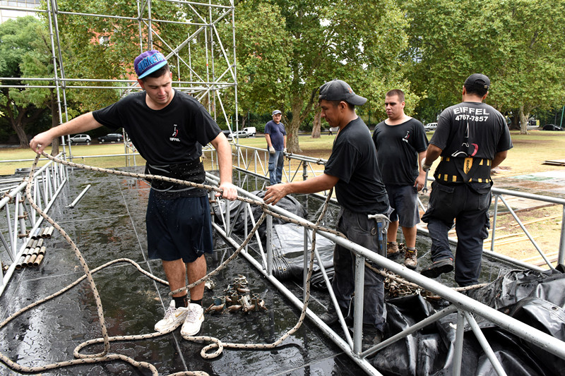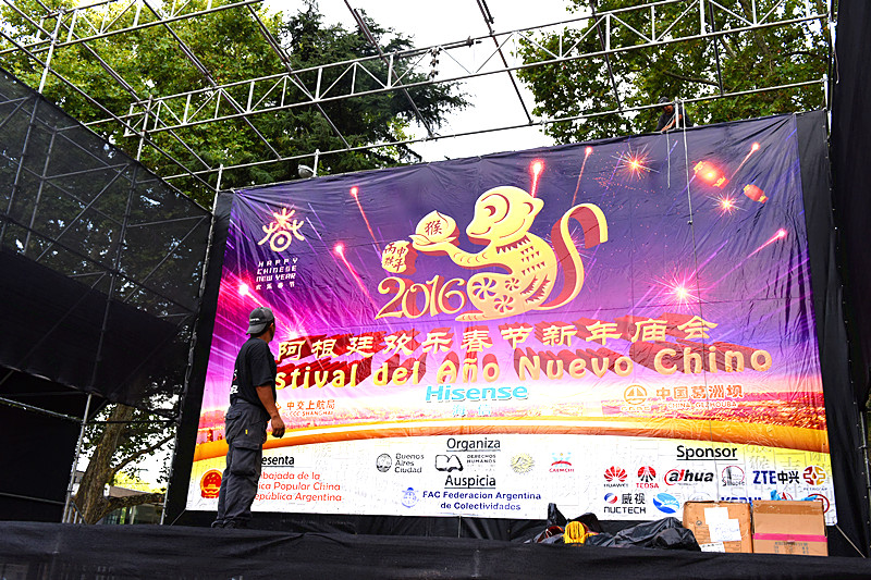 经过一昼夜的施工,今晨,演出舞台、电视大屏幕、灯光、电力输配、场地铺设、摊位安装已全部结束,今天上午将进行电视转播设备安装和线路敷设,摊位厨具的安装调试等项工作。2016海信。阿根廷“欢乐春节”庆典活动文艺演出,将于18时正式开幕,届时大使馆领导,阿根廷政要,布市政府有关领导,华人社团侨领及华人华侨代表将出席观看。