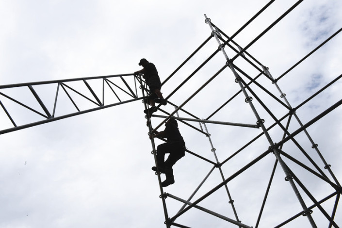 高空作业不仅需要胆大,更需要心细,他们认真做好每一个动作,确保安装质量。