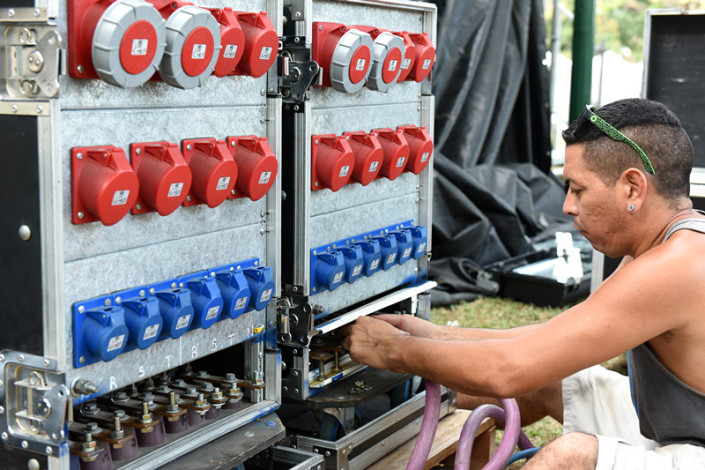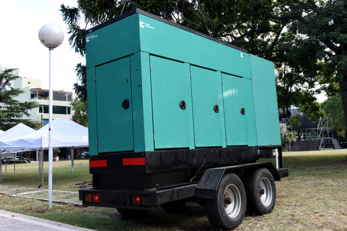 四台发电机全部摆放在演出现场,它们将为整个活动提供电力保证,确保活动的顺利进行。