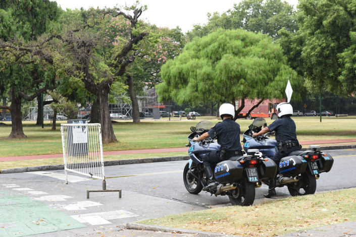 51警察分局局长Hector Raul Palacio先生也来到安装现场,检查警力工作,配合工程安装顺利进行。两天的活动中,他们将提供48小时的警力保护。