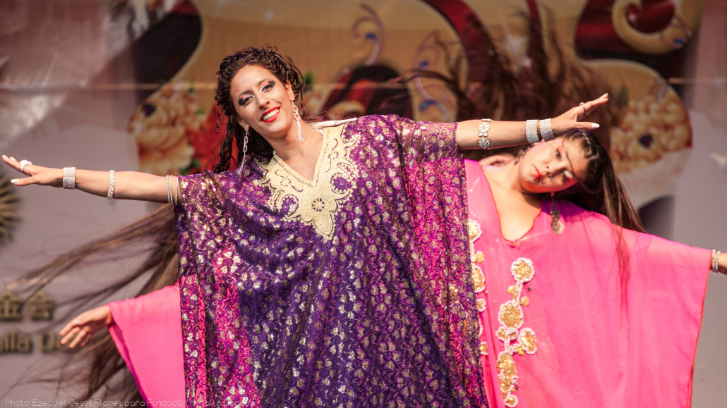 随着悠扬的中国乐曲,四位阿根廷姑娘身着中国传统服装跳起了中国的扇子舞。婀娜的舞姿赢得了全场的喝彩。庙会的开幕演出不仅有舞龙舞狮表演、武术和中国歌舞表演,还安排了阿根廷流行歌手献唱以及阿根廷探戈表演,将中阿文化融为一炉。