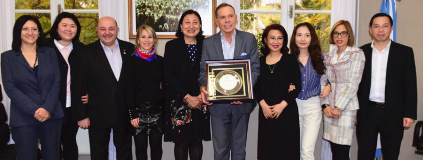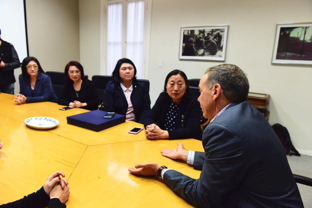 El Director Nacional de Migraciones, Dr. Horacio García, recibió en la sede de Migraciones a la señora Chen Jing, presidenta de Adisadu (Asociación Civil de Inmigrantes Sino Argentina de Ultramar para Mujeres, Niños y Adolescentes), al Director de Relaciones Institucionales de la Federación Argentina de Colectividades, el señor Juan Sarrafian y una delegación de ciudadanos chinos residentes en Argentina, quienes le otorgaron una distinción por su trabajo de excelencia y compromiso con los migrantes. También estuvieron presentes en la reunión Sofía Pallitto, Directora General de Asuntos Institucionales y Sociales e integrantes del equipo de Adisadu, Carola Chen y Estela Gagliardi.