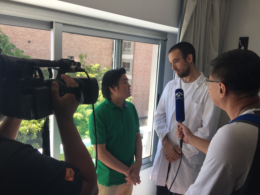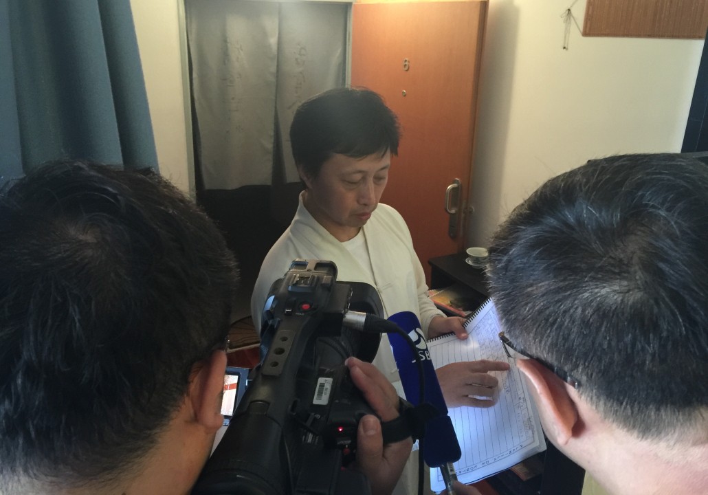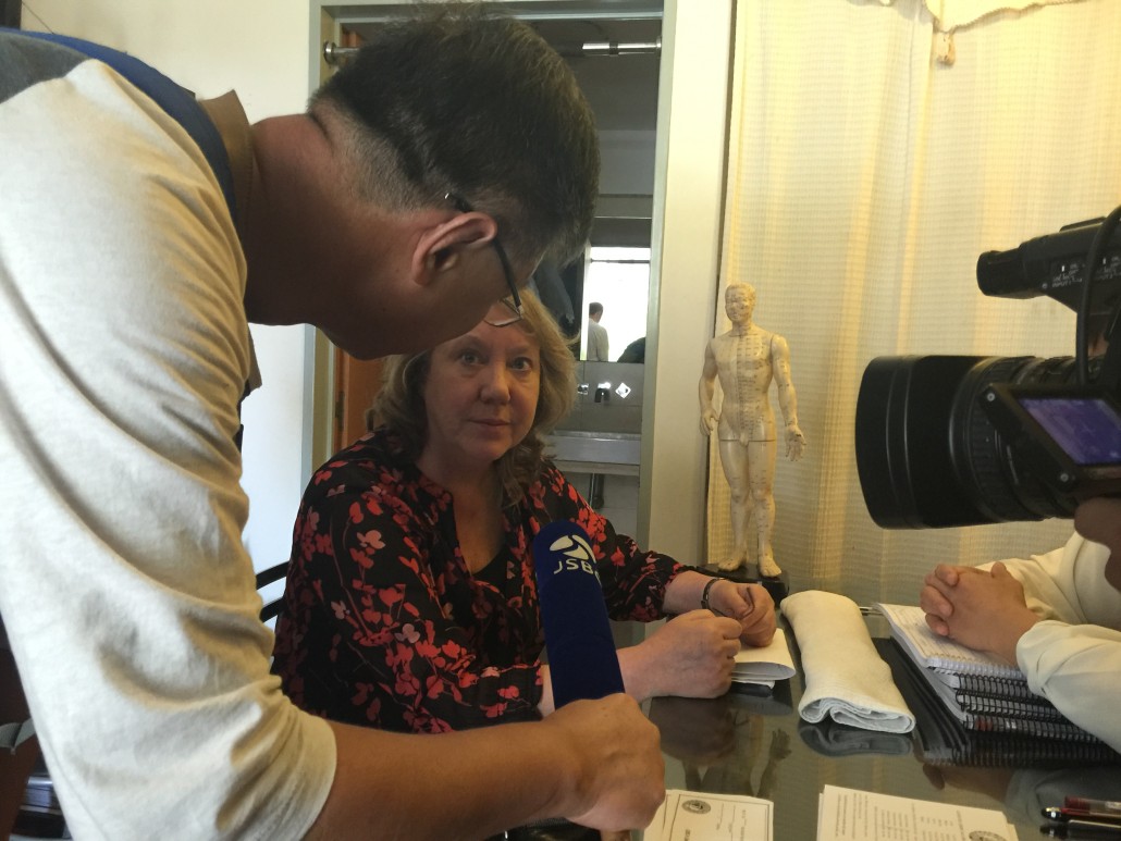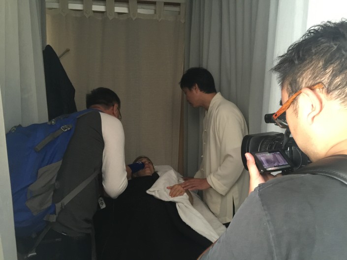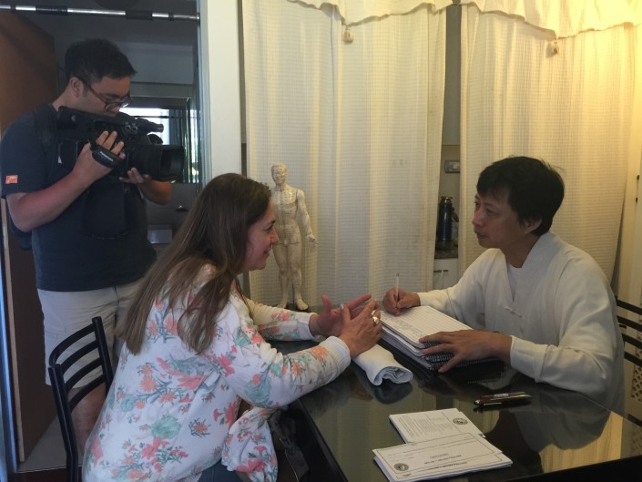El Sr. Jia y Sr.Zhang de Jiangsu TV hicieron una entrevista a una paciente (52)del Maestro,ella trabja en la Oficina del Gobierno y sufrió muchos años por la enfermedad quistes mamarios. Después de tres veces al mes de tratamiento por Maestro Liu Ming, recibió el alta. y hoy es el día para la revisión.